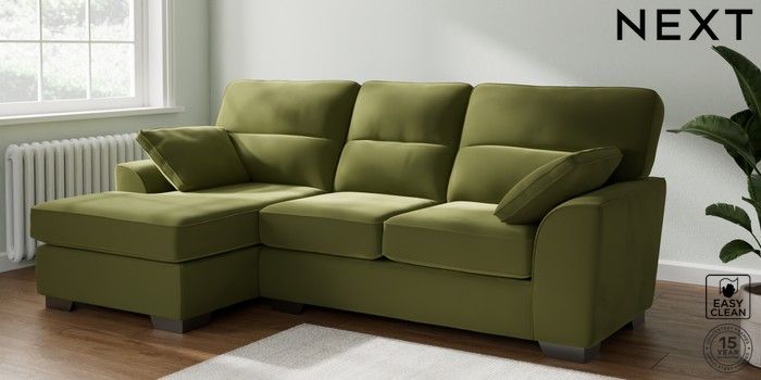 6.12.1 Buy Stamford Highback Medium Sofa Chaise - Left Hand Plush Velvet Easy Clean Mid Olive Green Large Square Angle - Gunmetal from the Next UK online shop Click here to use our accessible website