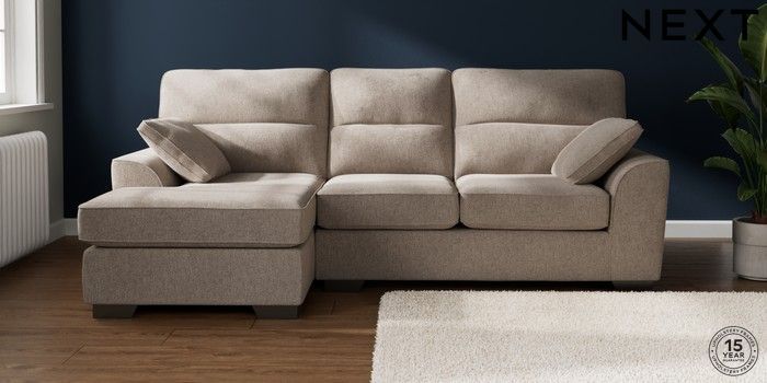 7.2.10 Buy Stamford Highback Medium Sofa Chaise - Left Hand Chunky Chenille Light Dove Large Square Angle - Gunmetal from the Next UK online shop Click here to use our accessible website