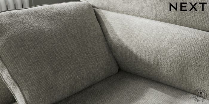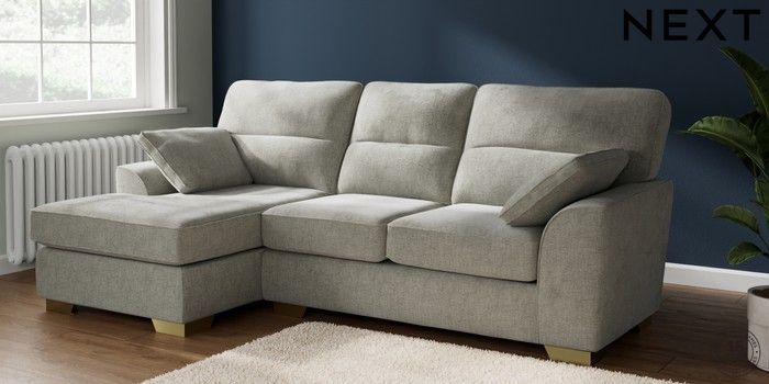 7.2.10 Buy Stamford Highback Medium Sofa Chaise - Left Hand Chunky Chenille Light Grey Large Square Angle - Brushed Brass from the Next UK online shop Click here to use our accessible website