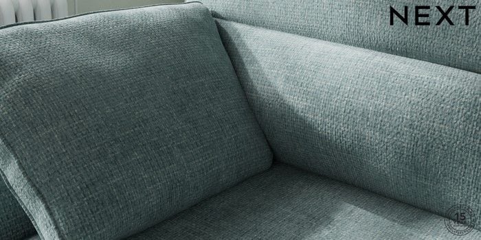7.2.10 Buy Stamford Highback Medium Sofa Chaise - Left Hand Chunky Chenille Light Teal Green Large Square Angle - Brushed Brass from the Next UK online shop Click here to use our accessible website