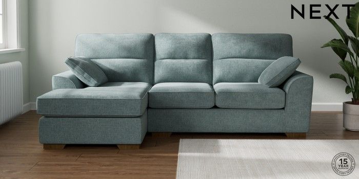 7.2.10 Buy Stamford Highback Medium Sofa Chaise - Left Hand Chunky Chenille Light Teal Green Large Square Angle - Mid from the Next UK online shop Click here to use our accessible website