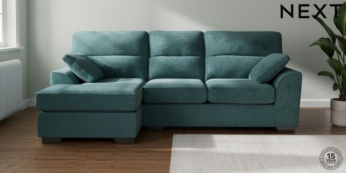 7.2.10 Buy Stamford Highback Medium Sofa Chaise - Left Hand Chunky Chenille Mid Teal Green Large Square Angle - Gunmetal from the Next UK online shop Click here to use our accessible website