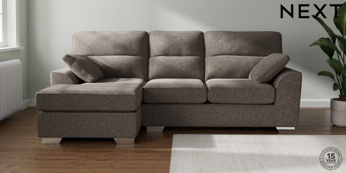 7.2.10 Buy Stamford Highback Medium Sofa Chaise - Left Hand Chunky Chenille Mink Brown Large Square Angle - Chrome Metal from the Next UK online shop Click here to use our accessible website