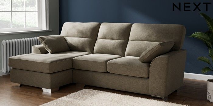 7.2.10 Buy Stamford Highback Medium Sofa Chaise - Left Hand Chunky Marl Light Olive Green Large Square Angle - Chrome Metal from the Next UK online shop Click here to use our accessible website