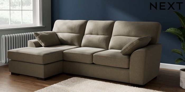 7.2.10 Buy Stamford Highback Medium Sofa Chaise - Left Hand Chunky Marl Light Olive Green Large Square Angle - Dark from the Next UK online shop Click here to use our accessible website