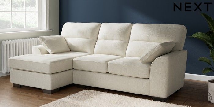 7.2.10 Buy Stamford Highback Medium Sofa Chaise - Left Hand Chunky Texture Oyster Large Square Angle - Gunmetal from the Next UK online shop Click here to use our accessible website
