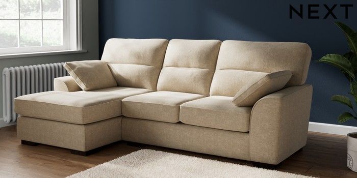 7.2.10 Buy Stamford Highback Medium Sofa Chaise - Left Hand Chunky Weave Cream Large Square Angle - Dark from the Next UK online shop Click here to use our accessible website