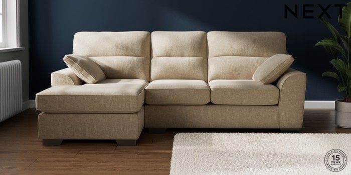 7.2.10 Buy Stamford Highback Medium Sofa Chaise - Left Hand Chunky Weave Cream Large Square Angle - Gunmetal from the Next UK online shop Click here to use our accessible website