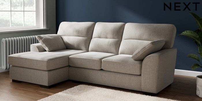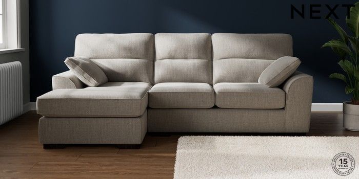 7.2.10 Buy Stamford Highback Medium Sofa Chaise - Left Hand Chunky Weave Dove Grey Large Square Angle - Dark from the Next UK online shop Click here to use our accessible website