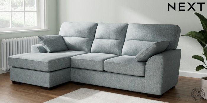 6.12.1 Buy Stamford Highback Medium Sofa Chaise - Left Hand Chunky Weave Mid Blue Large Square Angle - Dark from the Next UK online shop Click here to use our accessible website
