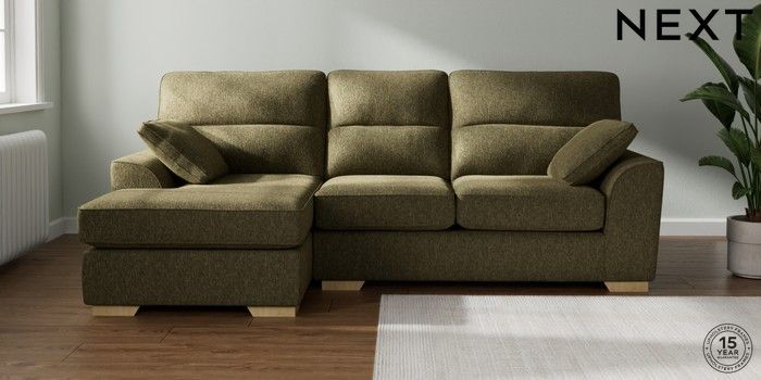 7.2.10 Buy Stamford Highback Medium Sofa Chaise - Left Hand Cotswold Chenille Dark Green Large Square Angle - Light from the Next UK online shop Click here to use our accessible website