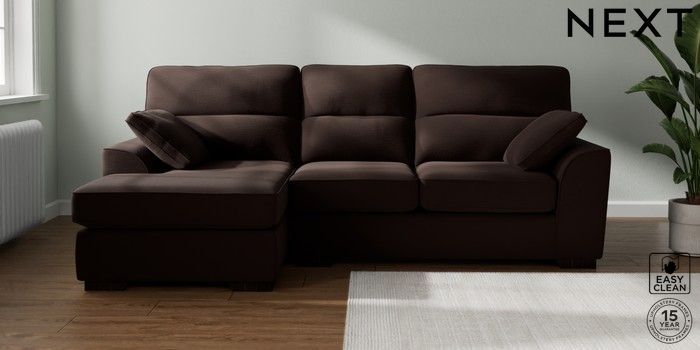 7.2.10 Buy Stamford Highback Medium Sofa Chaise - Left Hand Fine Chenille Easy Clean Chocolate Brown Large Square Angle - Dark from the Next UK online shop Click here to use our accessible website
