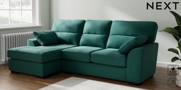 7.2.10 Buy Stamford Highback Medium Sofa Chaise - Left Hand Fine Chenille Easy Clean Dark Juniper Green Large Square Angle - Dark from the Next UK online shop Click here to use our accessible website