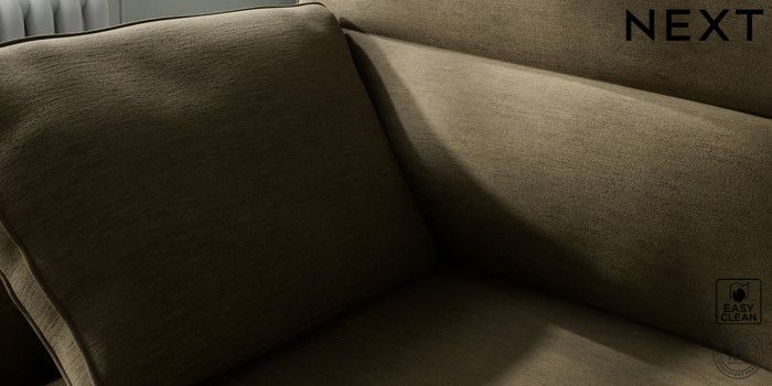 7.2.10 Buy Stamford Highback Medium Sofa Chaise - Left Hand Fine Chenille Easy Clean Dark Moss Green Large Square Angle - Brushed Brass from the Next UK online shop Click here to use our accessible website