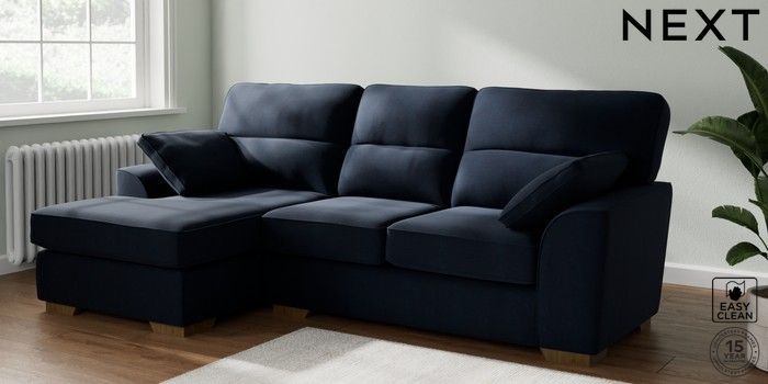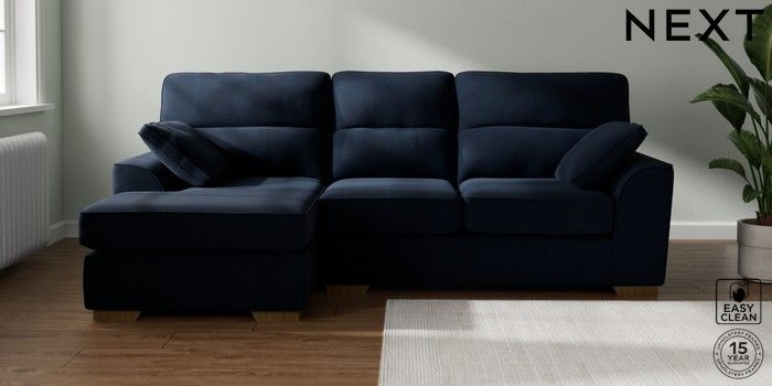 7.2.10 Buy Stamford Highback Medium Sofa Chaise - Left Hand Fine Chenille Easy Clean Dark Navy Blue Large Square Angle - Mid from the Next UK online shop Click here to use our accessible website