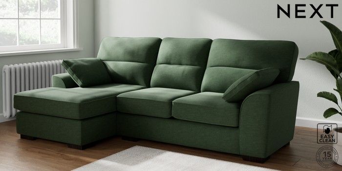 7.2.10 Buy Stamford Highback Medium Sofa Chaise - Left Hand Fine Chenille Easy Clean Mid Khaki Green Large Square Angle - Dark from the Next UK online shop Click here to use our accessible website