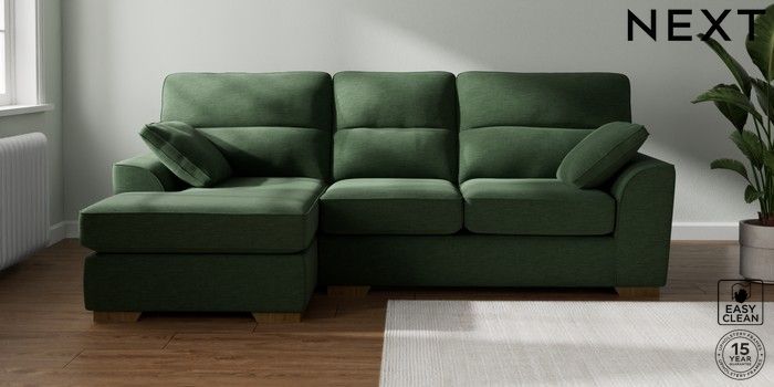 7.2.10 Buy Stamford Highback Medium Sofa Chaise - Left Hand Fine Chenille Easy Clean Mid Khaki Green Large Square Angle - Mid from the Next UK online shop Click here to use our accessible website