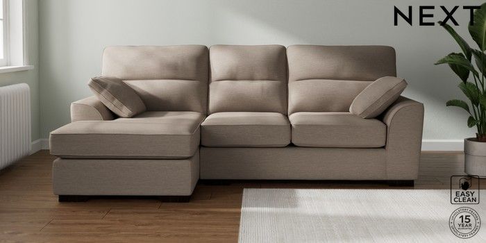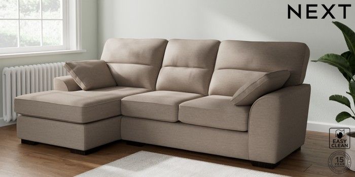 7.2.10 Buy Stamford Highback Medium Sofa Chaise - Left Hand Fine Chenille Easy Clean Mid Taupe Brown Large Square Angle - Dark from the Next UK online shop Click here to use our accessible website