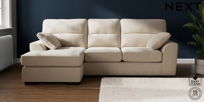 7.2.10 Buy Stamford Highback Medium Sofa Chaise - Left Hand Fine Chenille Easy Clean Oyster Large Square Angle - Dark from the Next UK online shop Click here to use our accessible website