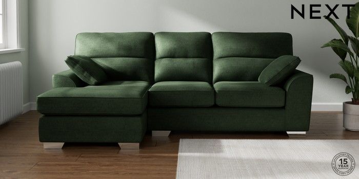 7.2.10 Buy Stamford Highback Medium Sofa Chaise - Left Hand Luxe Chenille Dark Green Large Square Angle - Chrome Metal from the Next UK online shop Click here to use our accessible website