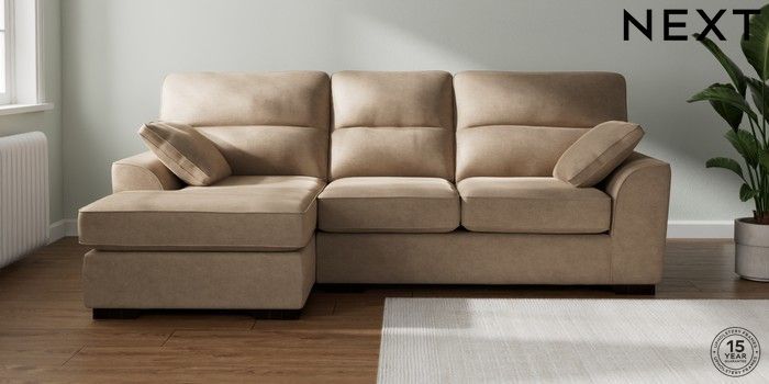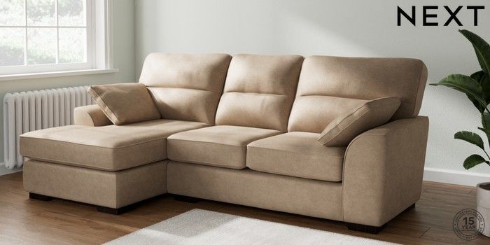 7.2.10 Buy Stamford Highback Medium Sofa Chaise - Left Hand Luxe Chenille Mid Camel Beige Large Square Angle - Dark from the Next UK online shop Click here to use our accessible website