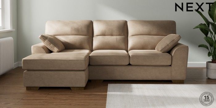 7.2.10 Buy Stamford Highback Medium Sofa Chaise - Left Hand Luxe Chenille Mid Camel Beige Large Square Angle - Mid from the Next UK online shop Click here to use our accessible website