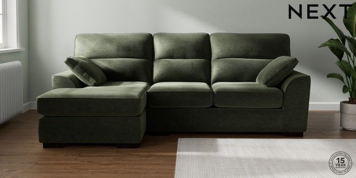 7.2.6 Buy Stamford Highback Medium Sofa Chaise - Left Hand Luxe Chenille Mid Green Large Square Angle - Dark from the Next UK online shop Click here to use our accessible website