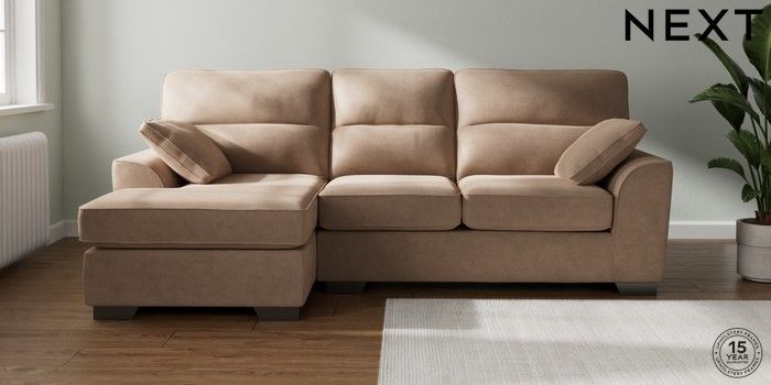 7.2.10 Buy Stamford Highback Medium Sofa Chaise - Left Hand Luxe Chenille Mid Natural Large Square Angle - Gunmetal from the Next UK online shop Click here to use our accessible website