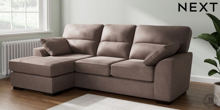 7.2.10 Buy Stamford Highback Medium Sofa Chaise - Left Hand Luxe Chenille Mink Brown Large Square Angle - Dark from the Next UK online shop Click here to use our accessible website