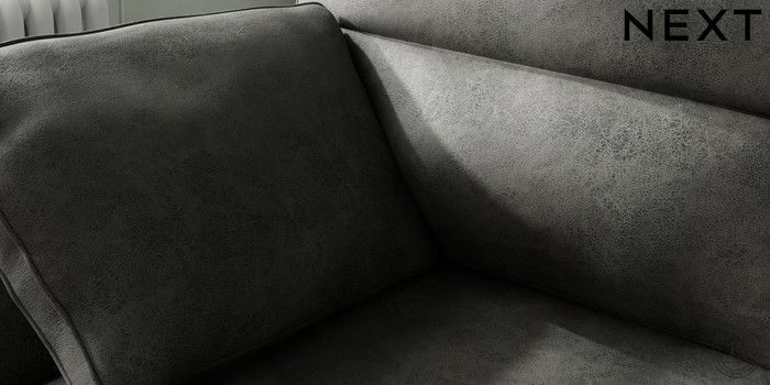 7.2.10 Buy Stamford Highback Medium Sofa Chaise - Left Hand Monza Faux Leather Easy Clean Dark Grey Large Square Angle - Brushed Brass from the Next UK online shop Click here to use our accessible website