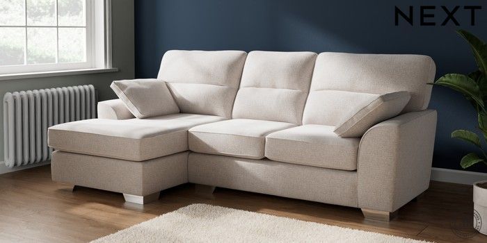 7.2.6 Buy Stamford Highback Medium Sofa Chaise - Left Hand Multi Weave Oyster Large Square Angle - Chrome Metal from the Next UK online shop Click here to use our accessible website
