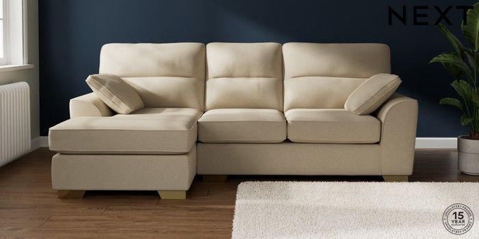 7.2.10 Buy Stamford Highback Medium Sofa Chaise - Left Hand Natural Mix Light Natural Large Square Angle - Brushed Brass from the Next UK online shop Click here to use our accessible website