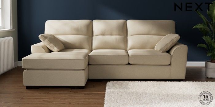 7.2.10 Buy Stamford Highback Medium Sofa Chaise - Left Hand Natural Mix Light Natural Large Square Angle - Dark from the Next UK online shop Click here to use our accessible website