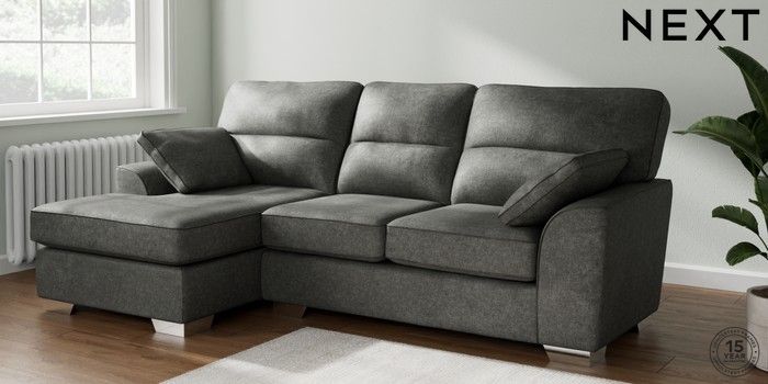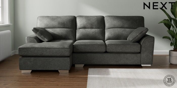 7.2.10 Buy Stamford Highback Medium Sofa Chaise - Left Hand Plush Chenille Dark Grey Large Square Angle - Chrome Metal from the Next UK online shop Click here to use our accessible website