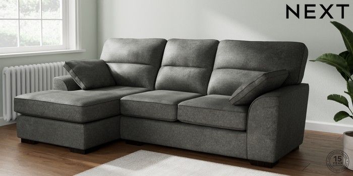 7.2.10 Buy Stamford Highback Medium Sofa Chaise - Left Hand Plush Chenille Dark Grey Large Square Angle - Dark from the Next UK online shop Click here to use our accessible website