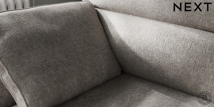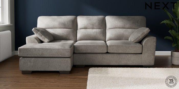 7.2.10 Buy Stamford Highback Medium Sofa Chaise - Left Hand Plush Chenille Light Grey Large Square Angle - Gunmetal from the Next UK online shop Click here to use our accessible website