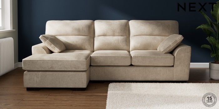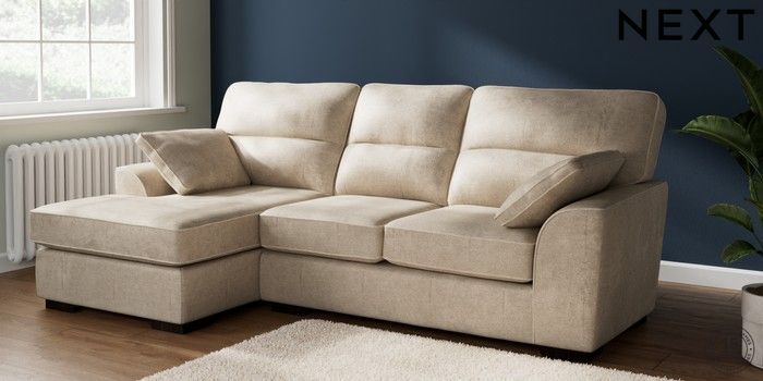 7.2.10 Buy Stamford Highback Medium Sofa Chaise - Left Hand Plush Chenille Light Natural Large Square Angle - Dark from the Next UK online shop Click here to use our accessible website