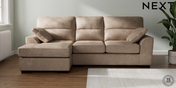 7.2.10 Buy Stamford Highback Medium Sofa Chaise - Left Hand Plush Chenille Mid Natural Large Square Angle - Dark from the Next UK online shop Click here to use our accessible website