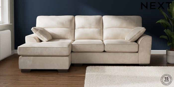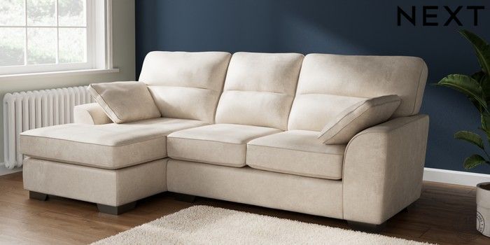 7.2.10 Buy Stamford Highback Medium Sofa Chaise - Left Hand Plush Chenille Oyster Large Square Angle - Gunmetal from the Next UK online shop Click here to use our accessible website
