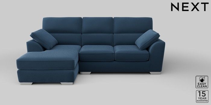 6.12.1 Buy Stamford Highback Medium Sofa Chaise - Left Hand Plush Velvet Easy Clean Airforce Blue Large Square Angle - Chrome Metal from the Next UK online shop Click here to use our accessible website