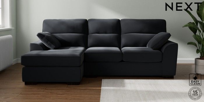 7.2.10 Buy Stamford Highback Medium Sofa Chaise - Left Hand Plush Velvet Easy Clean Charcoal Grey Large Square Angle - Dark from the Next UK online shop Click here to use our accessible website