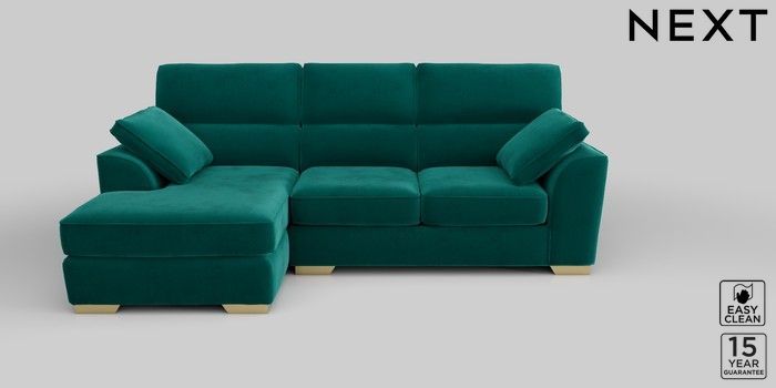 6.12.1 Buy Stamford Highback Medium Sofa Chaise - Left Hand Plush Velvet Easy Clean Juniper Green Large Square Angle - Brushed Brass from the Next UK online shop Click here to use our accessible website