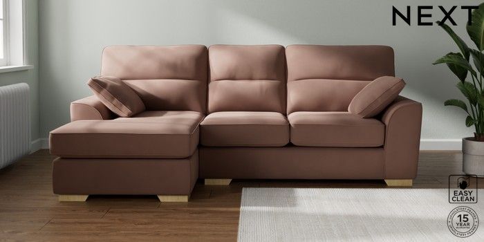 7.2.10 Buy Stamford Highback Medium Sofa Chaise - Left Hand Plush Velvet Easy Clean Mid Natural Large Square Angle - Light from the Next UK online shop Click here to use our accessible website