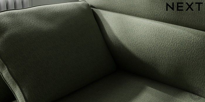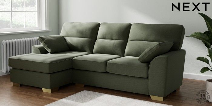 7.2.10 Buy Stamford Highback Medium Sofa Chaise - Left Hand Relaxed Linen Look Dark Green Large Square Angle - Brushed Brass from the Next UK online shop Click here to use our accessible website
