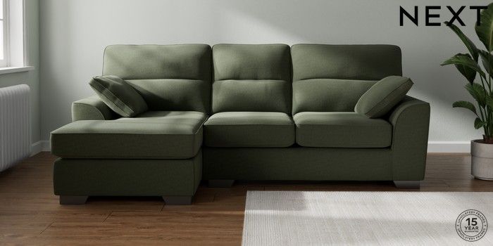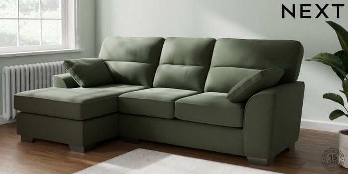 7.3.1 Buy Stamford Highback Medium Sofa Chaise - Left Hand Relaxed Linen Look Dark Green Large Square Angle - Gunmetal from the Next UK online shop Click here to use our accessible website