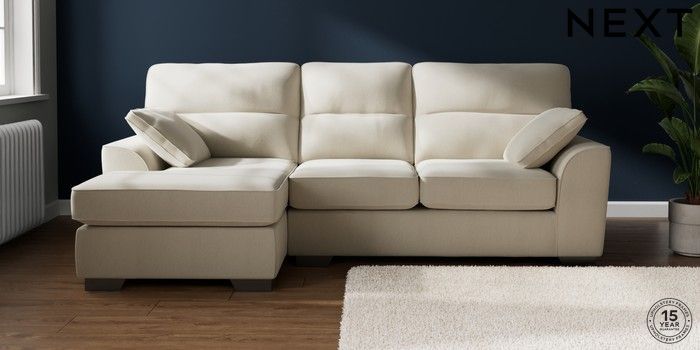 7.3.1 Buy Stamford Highback Medium Sofa Chaise - Left Hand Relaxed Linen Look Oyster Large Square Angle - Gunmetal from the Next UK online shop Click here to use our accessible website