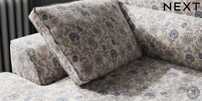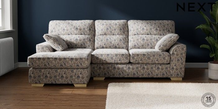 7.3.1 Buy Stamford Highback Medium Sofa Chaise - Left Hand Relaxed Linen Look Print Woodblock Floral Blue Large Square Angle - Light from the Next UK online shop Click here to use our accessible website