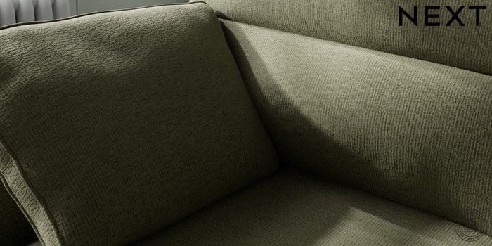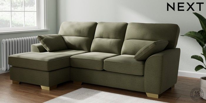 7.2.10 Buy Stamford Highback Medium Sofa Chaise - Left Hand Ripple Chenille Mid Moss Green Large Square Angle - Brushed Brass from the Next UK online shop Click here to use our accessible website