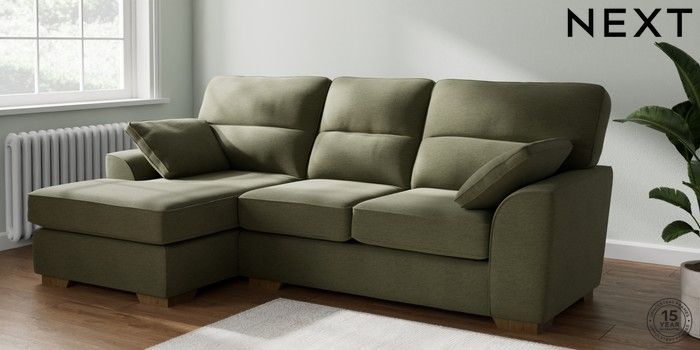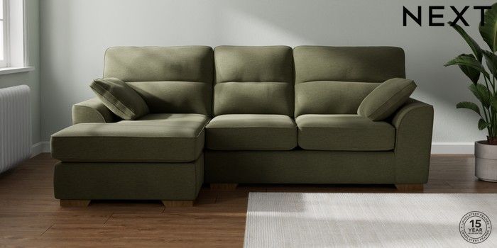 7.2.10 Buy Stamford Highback Medium Sofa Chaise - Left Hand Ripple Chenille Mid Moss Green Large Square Angle - Mid from the Next UK online shop Click here to use our accessible website