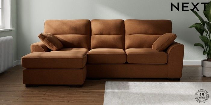 7.2.10 Buy Stamford Highback Medium Sofa Chaise - Left Hand Ripple Chenille Mid Rust Brown Large Square Angle - Dark from the Next UK online shop Click here to use our accessible website